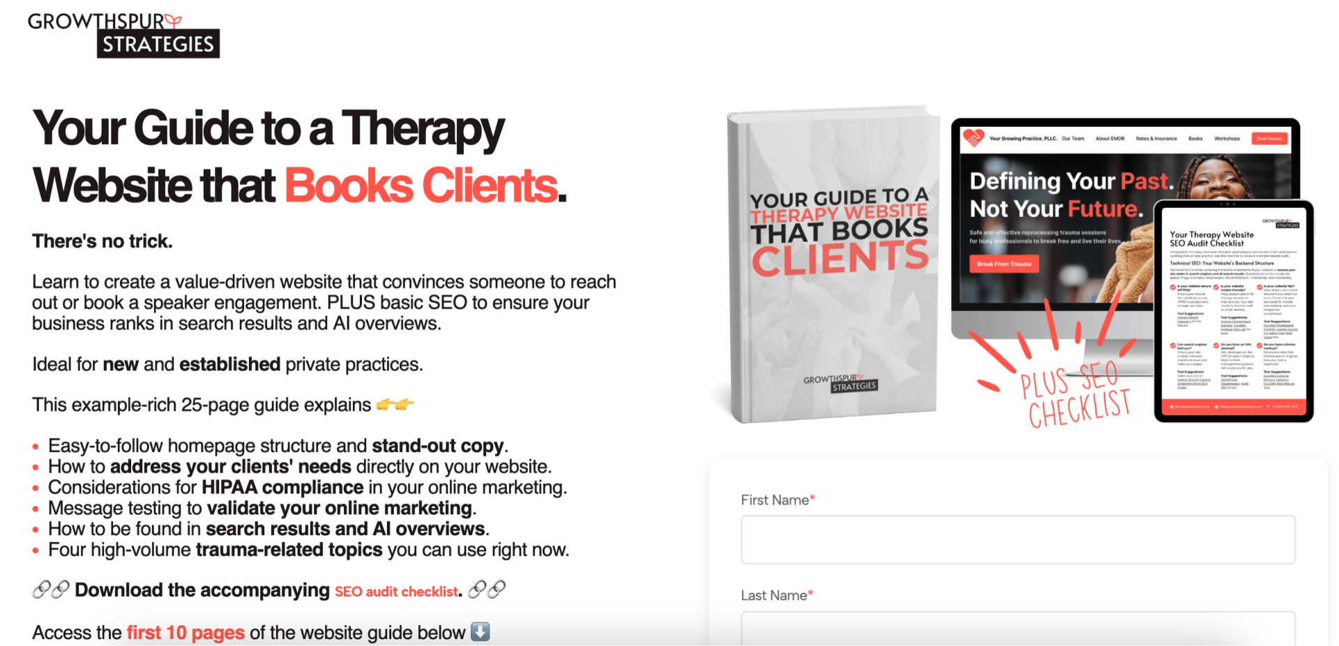 Below is an example of our most popular online ebook, Your Guide to a Therapy Website that Books Clients.